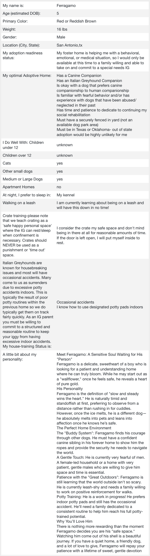 The Italian Greyhound Rescue Foundation was established by the national "parent"